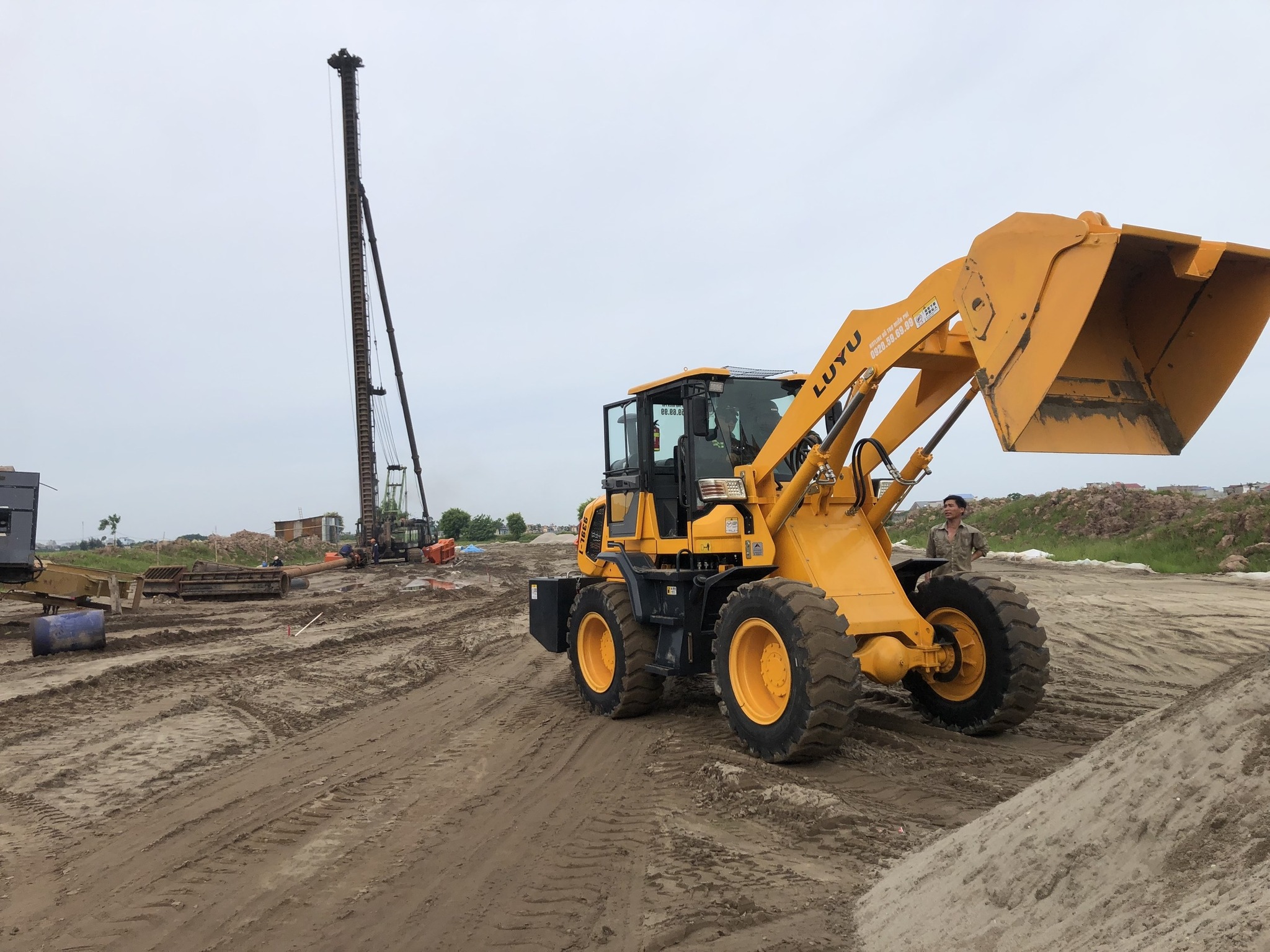 Hình ảnh máy xúc lật LUYU 939 tại công trường. Gầu của máy đã được điều chỉnh bề rộng cho phù hợp với hố móng