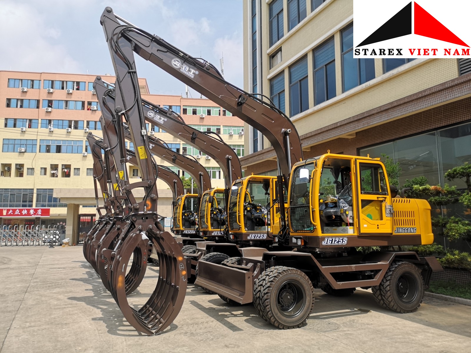 JG125S sở hữu bán kính đào lớn, chiều cao xúc đổ tốt cùng lực bốc khỏe. Bộ gắp có khả năng xoay 360° giúp thao tác linh hoạt trong không gian hẹp.