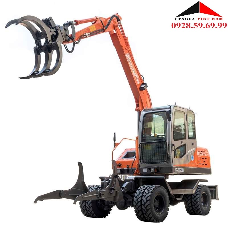 Chúng tôi xin giới thiệu: Máy xúc đào bánh lốp gắp mía Jinggong JG90Z