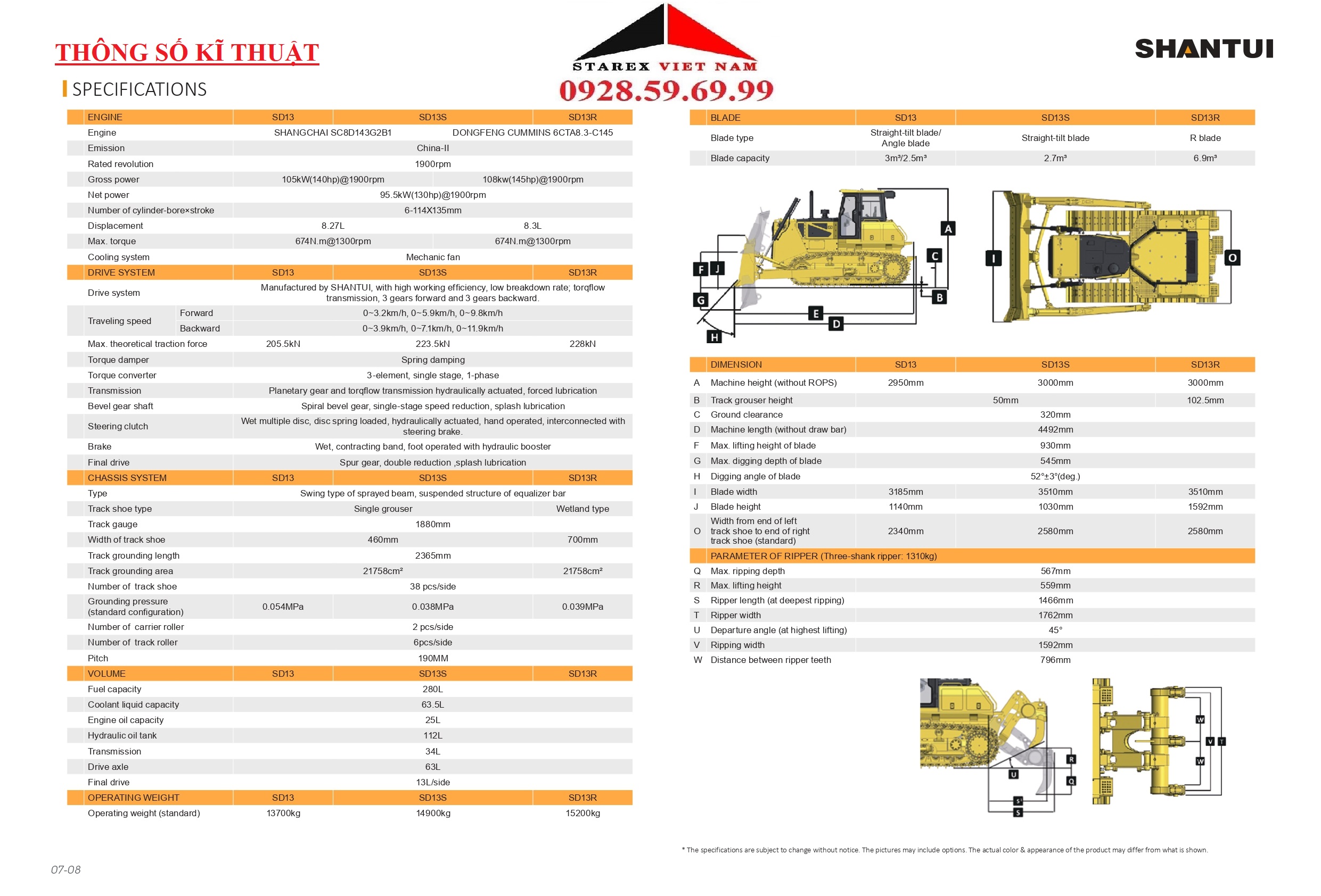 MÁY ỦI SHANTUI SD13 - Thiết kế chắc chắn khoa học, hoạt động bền bỉ, xe hoạt động với công suất cao ,dễ dử dụng và đặc biệt rất bền bỉ. Hotline: 0928.59.69.99