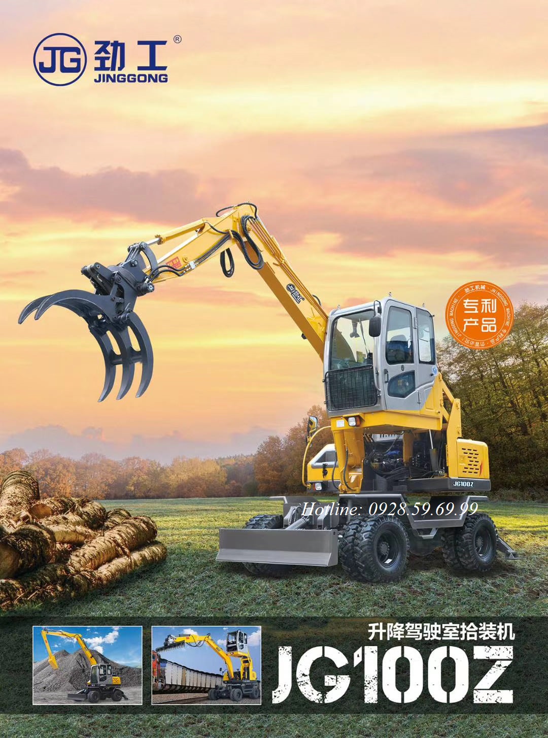 Chúng tôi xin giới thiệu: Máy xúc đào bánh lốp gắp gỗ Jinggong JG100Z