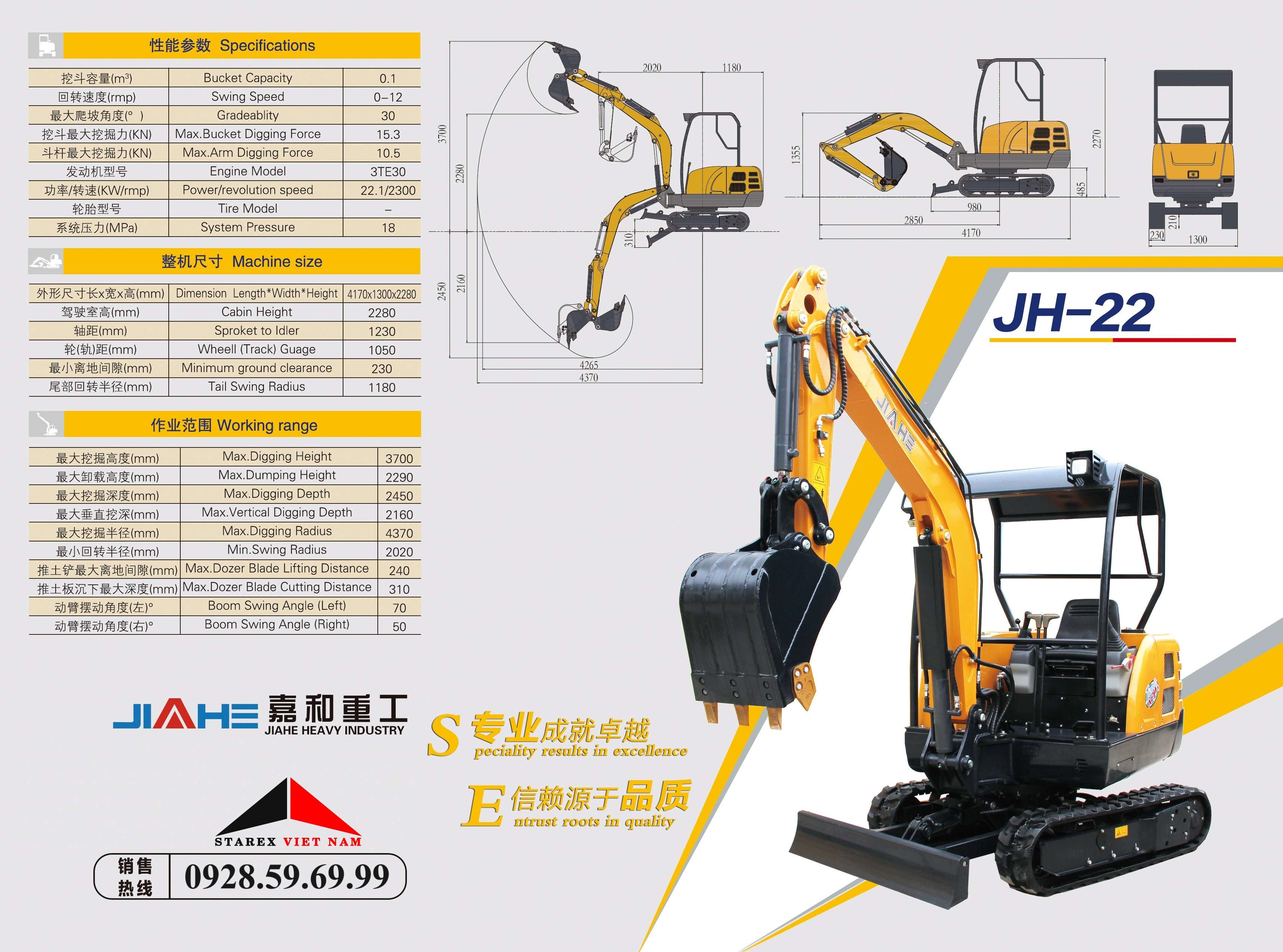 THÔNG SỐ CƠ BẢN CỦA MÁY XÚC ĐÀO MINI JIAHE JH22