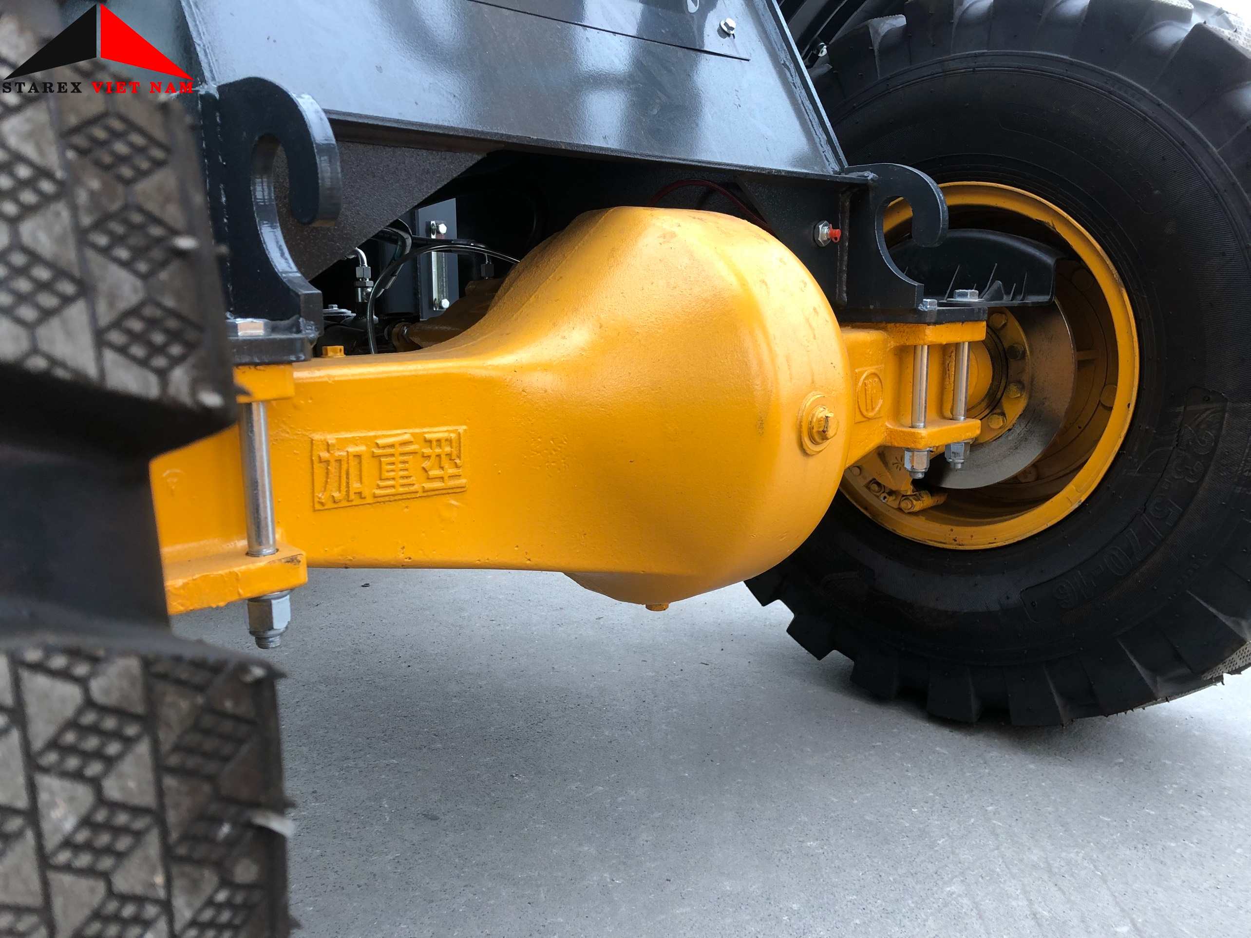 2.Trang bị lốp béo 23.5/70-16. Tay chang kết hợp 1 tay, loại thủy lực nhẹ nhàng khi thao tác. Cầu dầu, phanh đĩa trợ lực hơi.
