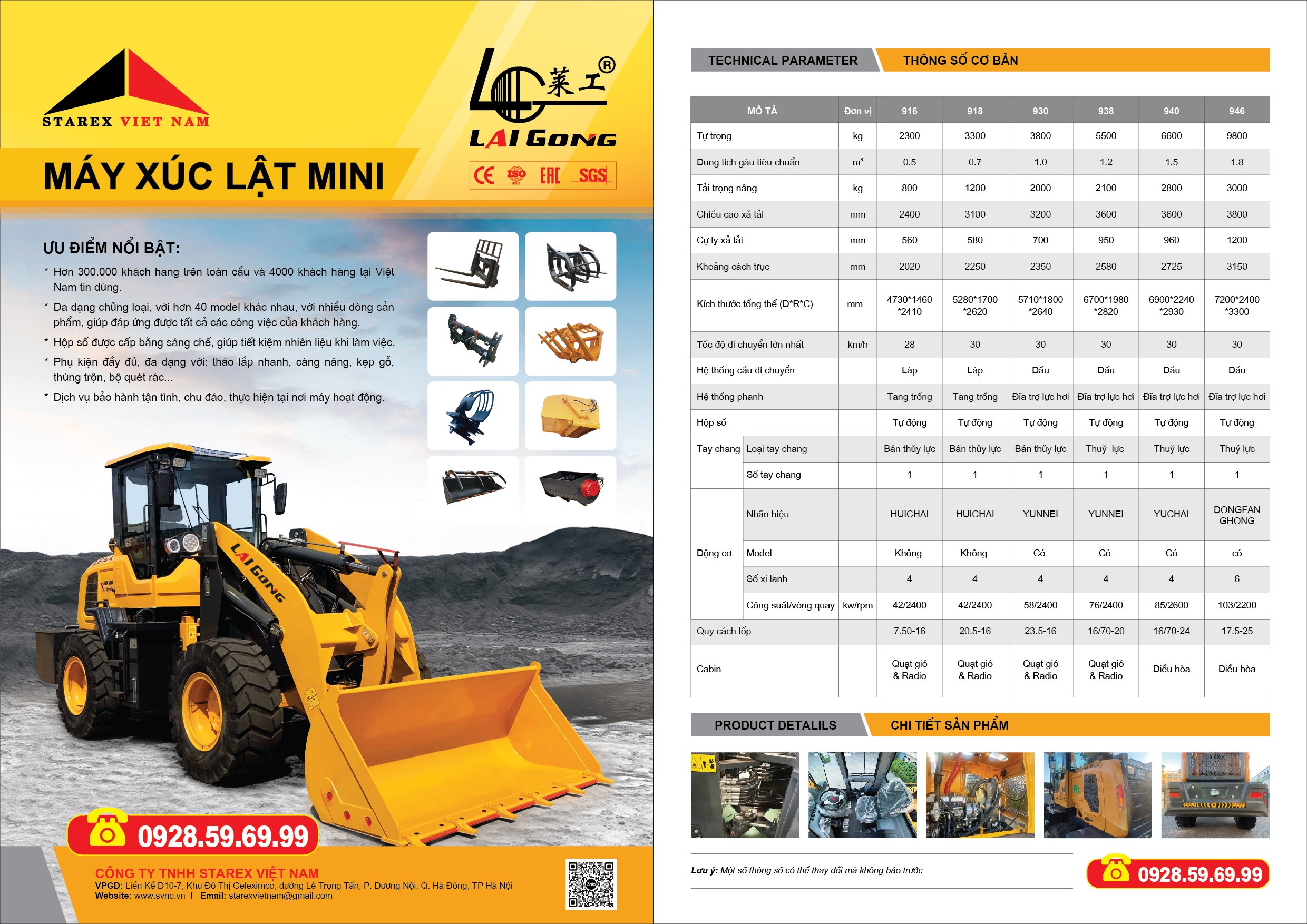 Catalog thông số cơ bản các loại máy xúc lật LAIGONG đang có sẵn tại thị trường Việt Nam
