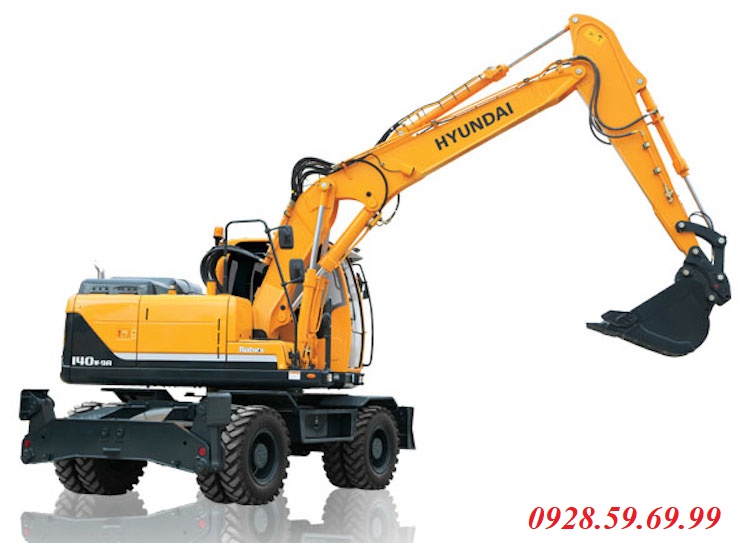 2. HYUNDAI: Cùng với Doosan, Hyundai là tên tuổi thứ 2 của Hàn Quốc thống lĩnh thị phần máy đào bánh lốp. Ưu điểm tương đồng người anh em Doosan.