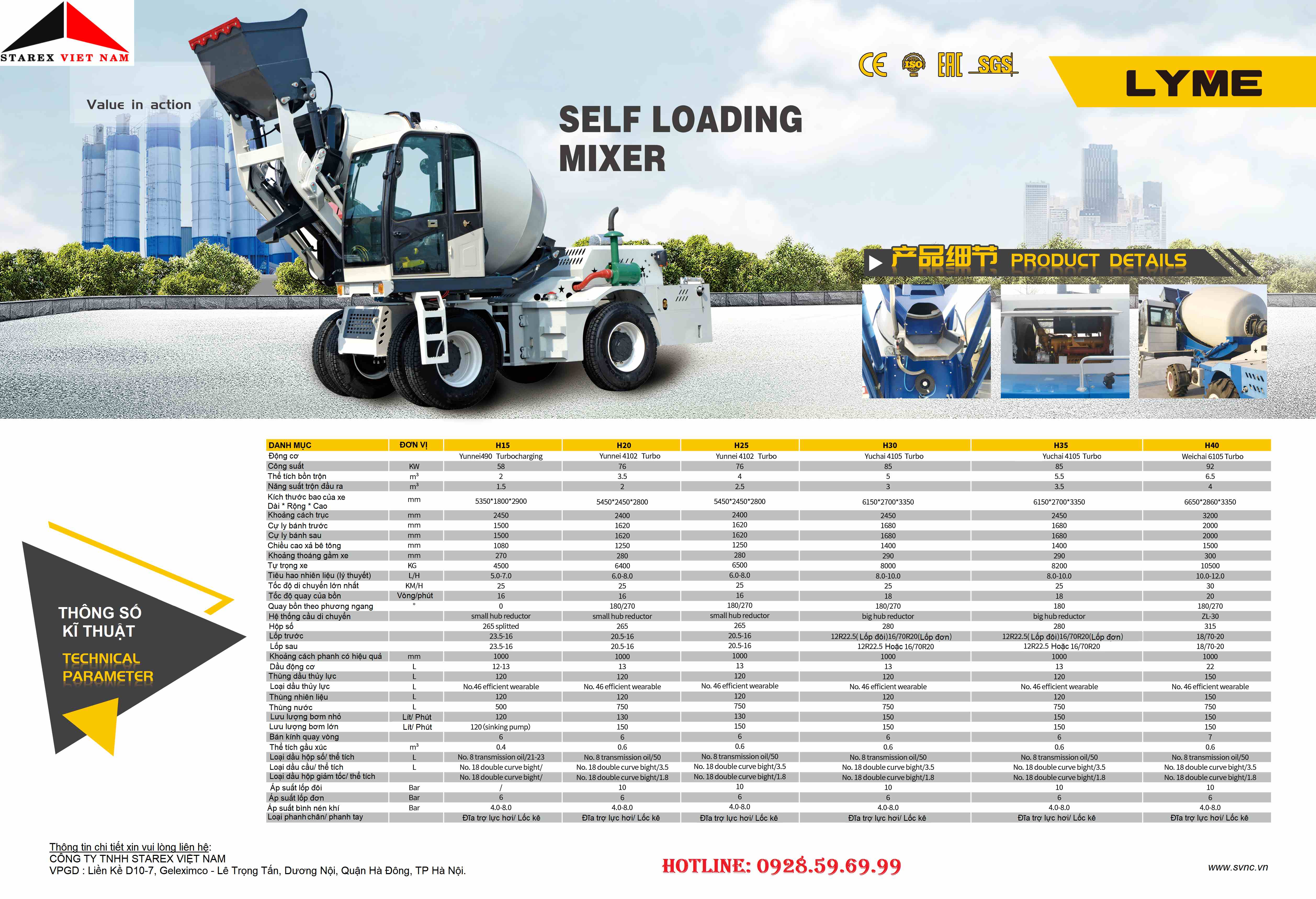 Catalog thông số xe trộn bê tông tự nạp liệu H15